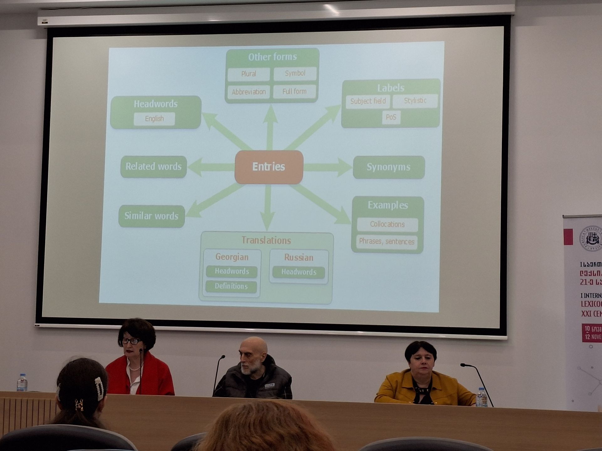 Insbrukas Universitātes profesors Piuss ten Hakens (Pius ten Hacken) plenārreferātā analizēja leksikona izstrādes un lēmumu pieņemšanas teorijas, kas izmantojamas vārdnīcu izstrādē, bet Ilija Valsts universitātes profesore, vairāku vārdnīcu autore un konferences organizatoriskās komitejas priekšsēdētāja Tinatina Margalitadze (Tinatin Margalitadze) plenārreferātā sniedza plašu pārskatu par Gruzijas leksikogrāfijas tradīcijām un mūsdienu risinājumiem. Austrijā terminoloģijas darbs lielā mērā ir komercuzņēmumu darba kārtībā, savukārt Gruzijas leksikogrāfijā terminoloģijas jautājumu risināšana ir akadēmiskās vides pārstāvju uzdevums.