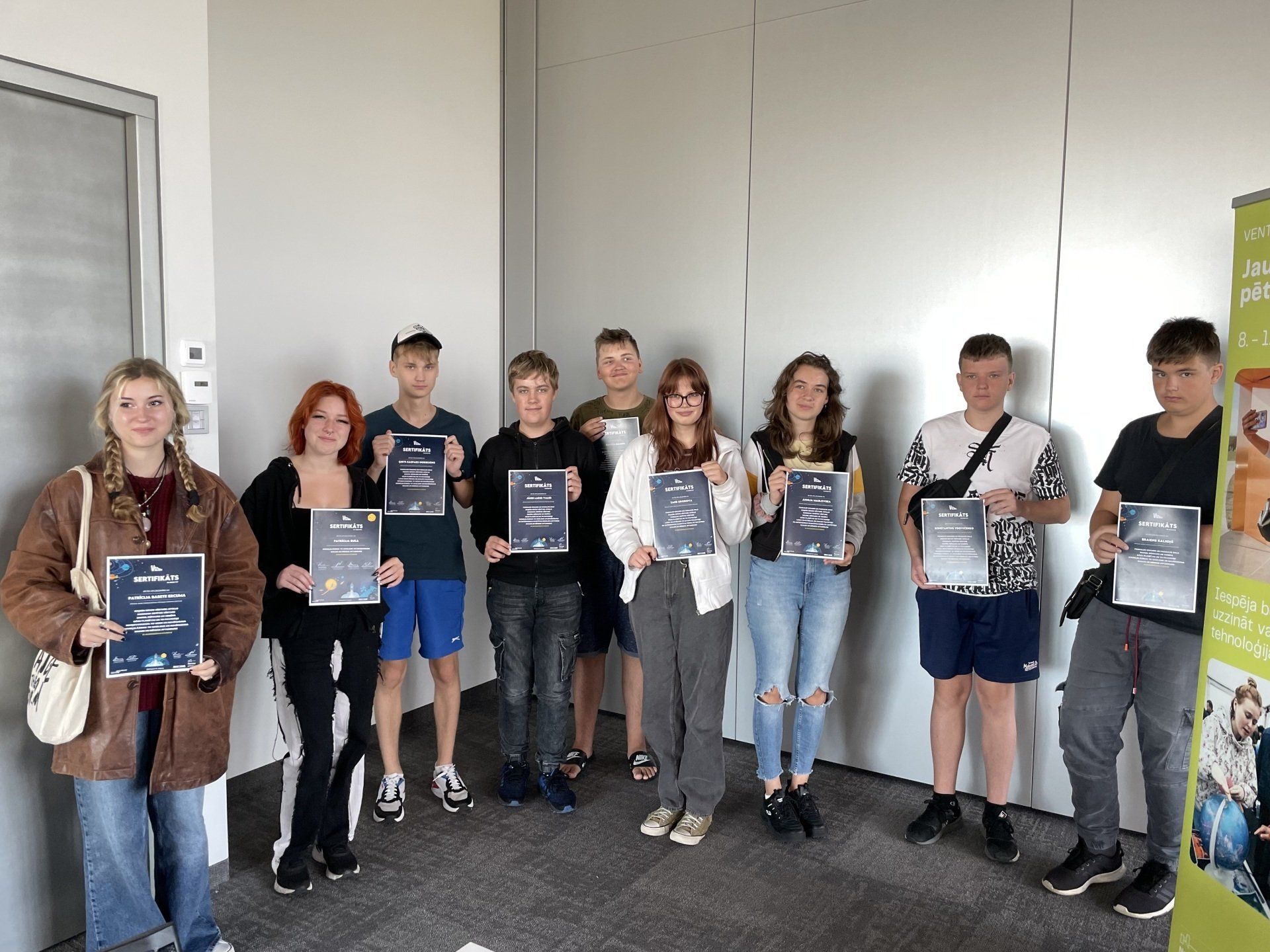Noslēgumā par jaunapgūtajām tēmām Jauno dabaszinātņu centra nodarbību dalībniekiem tika izsniegti sertifikāti.