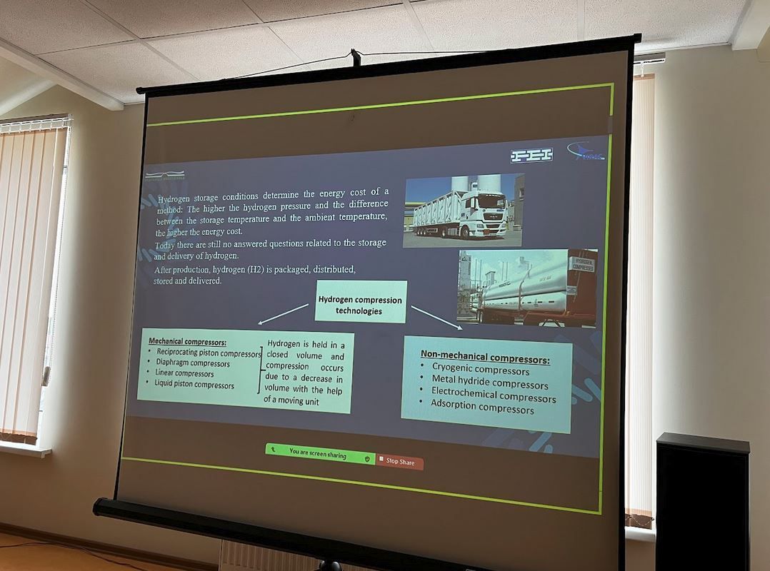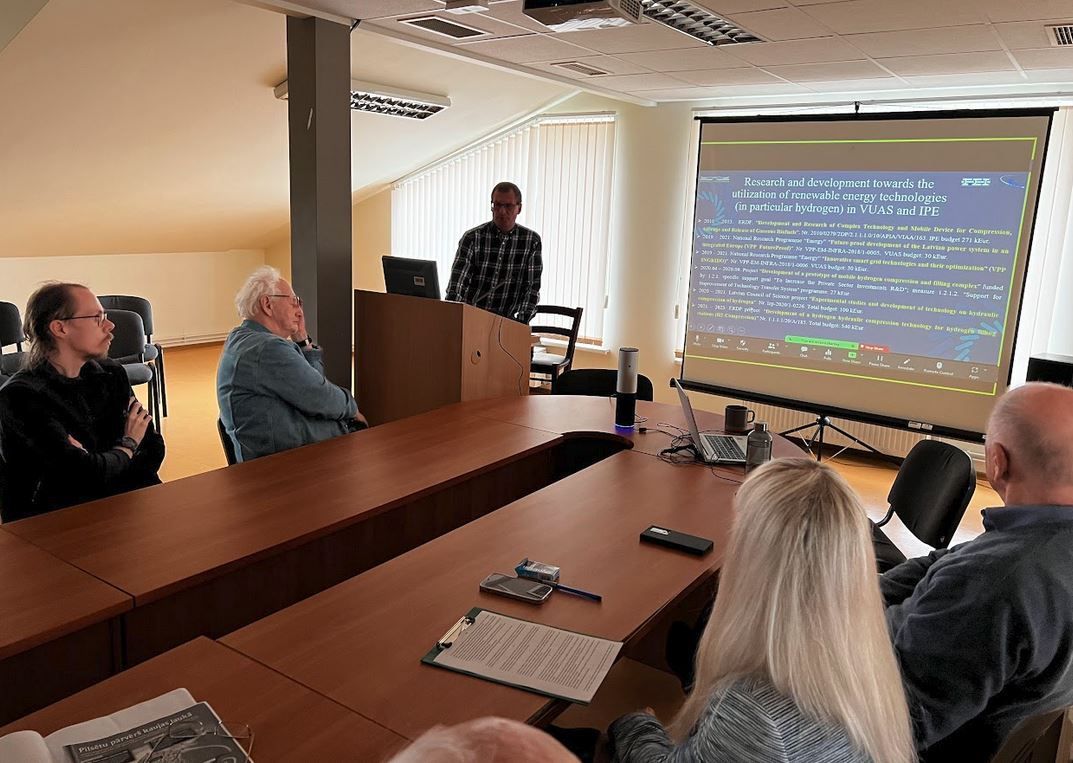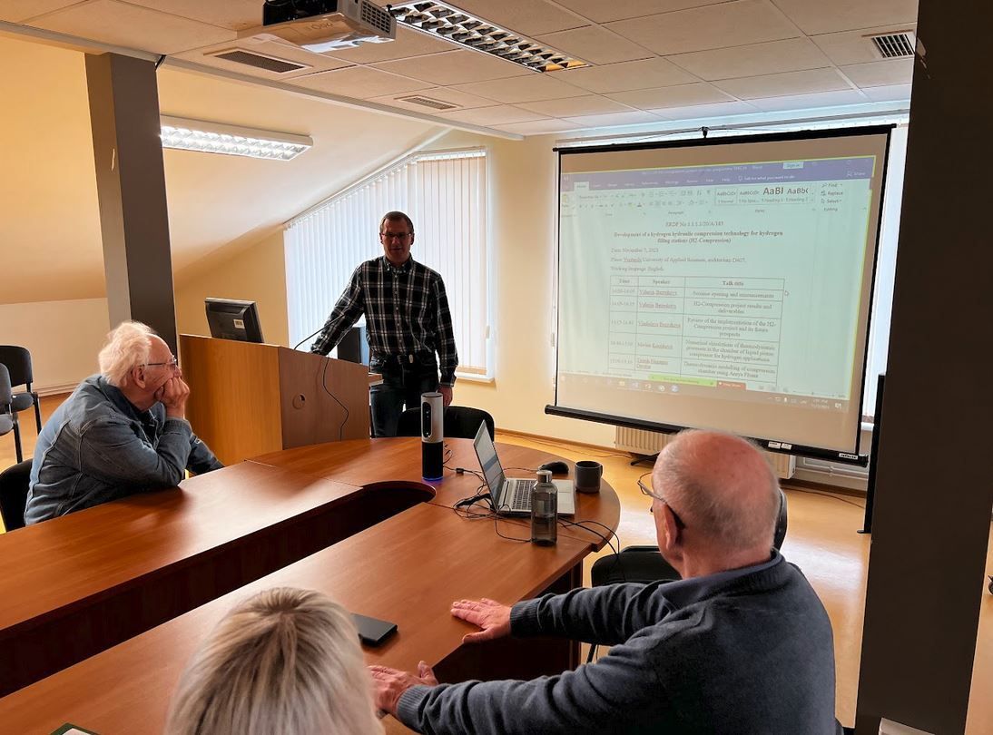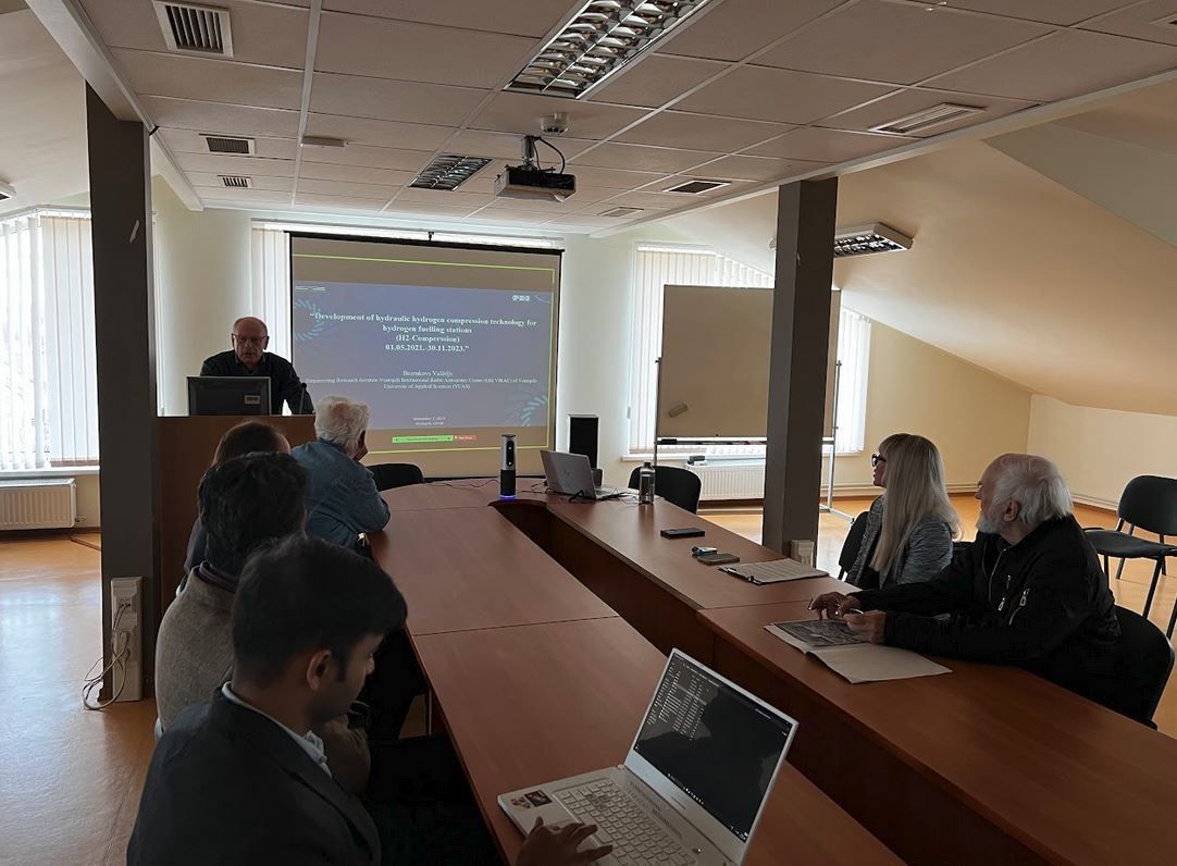Zinātniskajā seminārā tika prezentēti projekta "Ūdeņraža hidrauliskās kompresijas tehnoloģijas izstrāde ūdeņraža degvielas uzpildes stacijām (H2-Compression)" rezultāti un nākotnes plāni. Seminārā uzstājās projekta dalībnieki no Ventspils Augstskolas (Valerijs Bezrukovs, Marina Koņuhova, Tejesh Nagappa Devdas, Venkatesh Prasad Kanchendram Vasudev), Ventspils Augstskolas attīstības fonda (Vladislavs Bezrukovs) un Fizikālās enerģētikas institūta (Ņikita Gorbunovs).
