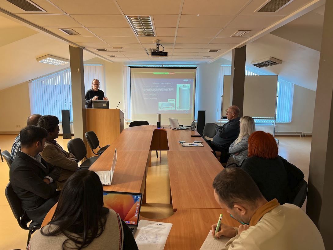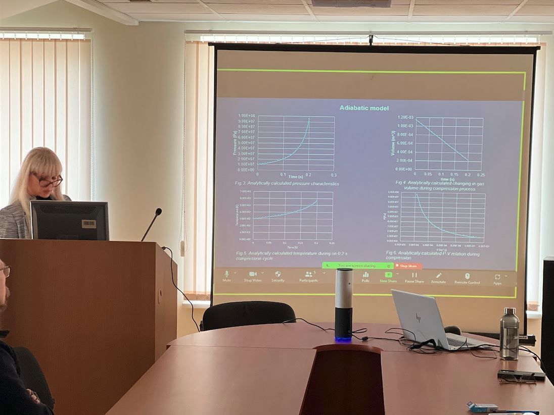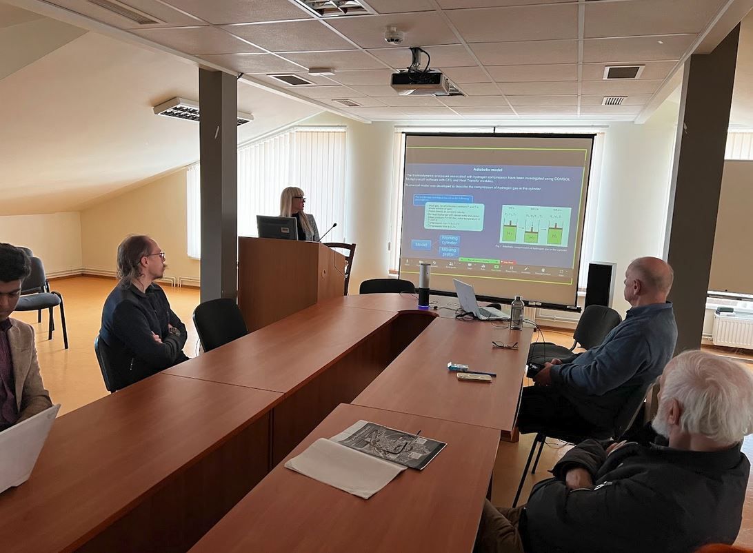 Semināru atklāja projekta vadošais pētnieks Valerijs Bezrukovs. Vladislavs Bezrukovs iepazīstināja ar projekta “H2-Compression” pārskatu tā īstenošanas laikā un projekta nākotnes perspektīvām, Marina Koņuhova prezentēja termodinamisko procesu skaitliskās modelēšanas rezultātus šķidra virzuļa kompresora kamerai, kas paredzēta ūdeņraža lietojumprogrammām, Tejesh Nagappa Devdas un Venkatesh Prasad Kanchendram Vasudev prezentēja šķidruma mērītāju darbības analīzi, eksperimentālos un skaitliskā modeļa rezultātus, taču Ņikita Gorbunovs iepazīstināja ar kompresijas kameras un pilna modeļa izstrādes procesu SolidWorks programmatūrā.